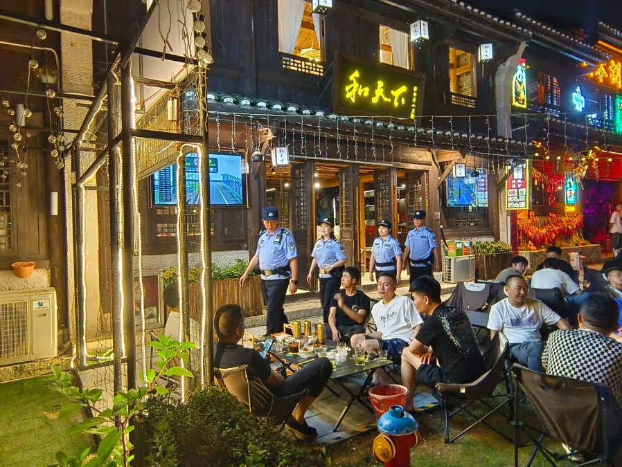 为做精做细旅游警务,旧州派出所用“三个协同推进”打造“平安服务圈”。派出所牵头成立平安景区守望联盟,吸纳辖区56家企事业单位成为景区平安合伙人,协同推进公安治理与行业治理;与镇党委政府联动,把平安建设主体责任压实到村居,协同推进派出所主防与基层组织治理;成立多警种快反队,明确“常驻点、必巡线、步巡段、车巡线”屯警街面,联勤村居治保委和群防群治力量,协同推进专业巡逻和群防群治。