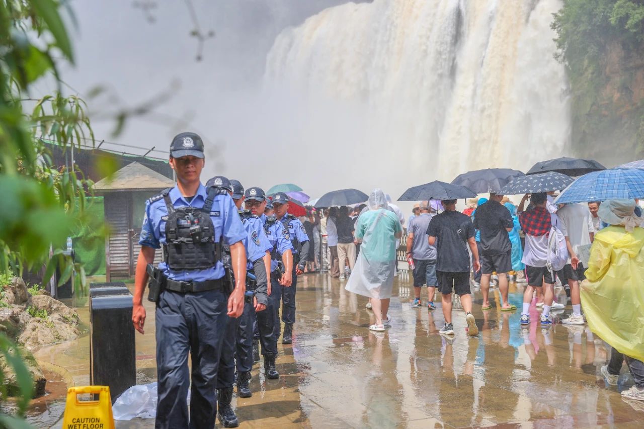 黄果树瀑布景区由18个大小瀑布组成,旅游高峰期日均接待游客4万到5万人次。为给游客提供安全的旅游环境,安顺市公安局黄果树旅游区分局积极与当地政府构建“党政统领、公司协同、社会参与”格局,统筹全区秩序整治工作,打通堵点、解决难点,形成了职能部门综合治理的工作格局。