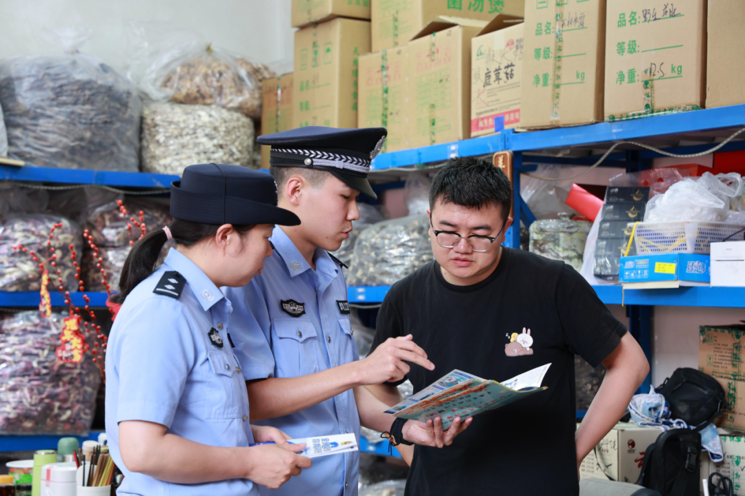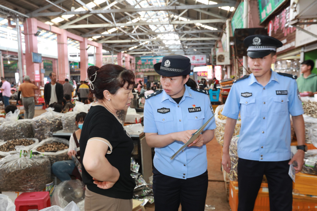 “民警同志,麻烦你帮我看看这是不是诈骗。”木水花市场一商户来到民警李文身边求助称,自己收到一条来自市场监督管理局的短信通知,要求开展个体工商户年报。因害怕被骗,于是他及时找到民警辨别真伪。李文耐心解答,指导商户务必亲自到有关市场监督管理部门进行核实,并现场开展反诈宣传,提醒商户提高警惕,做到“不听、不信、不转账”,谨防上当受骗。