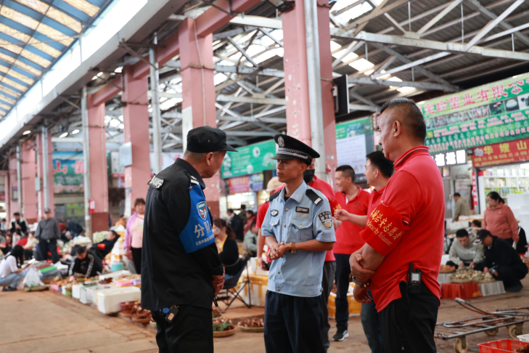 针对市场内占道经营、摆摊无序、放错拿错等乱象,福德派出所主动“吹哨”,联动社区、市场管理方、市场保安队伍、市场商户、群防群治“五方”力量,联动联建,群策群力,共同营造良好的市场营商环境。联合成立17人市场应急小分队,常态化开展巡逻防控工作,织密野生菌市场“防护网”。同时,积极发动市场商铺、摊位负责人佩戴“红袖标”,压实商户治安要素信息采集、案(事)件防范、矛盾纠纷排查化解“门前三包”责任,推动形成矛盾联调、工作联动、平安联创的治安防控新格局。