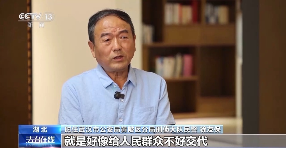 时任武汉市公安局黄陂区分局刑侦大队民警徐友保:把犯罪嫌疑人抓到了,感到比较欣慰,我本子上迟迟没破的案件终于能画上一个句号了。