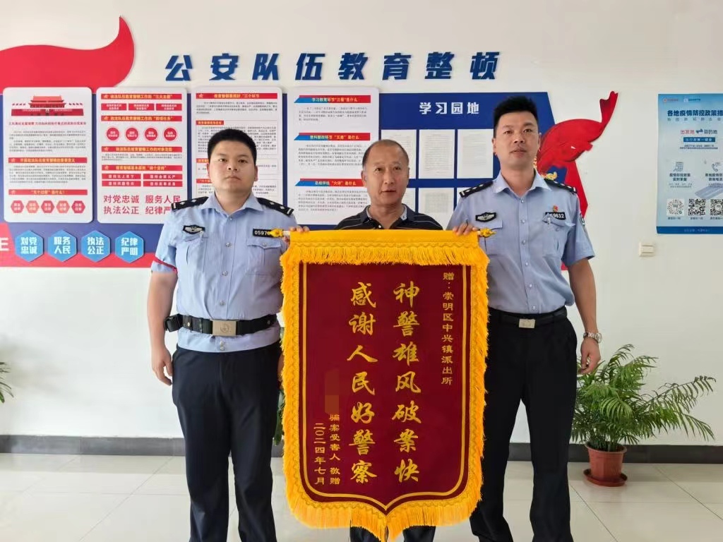 7月19日,回到成都的王老先生托亲属向派出所送来锦旗,感谢民警帮他追回部分钱款。目前,犯罪嫌疑人肖某因涉嫌掩饰隐瞒犯罪所得罪被崇明警方依法采取刑事强制措施,案件正在进一步侦办中。