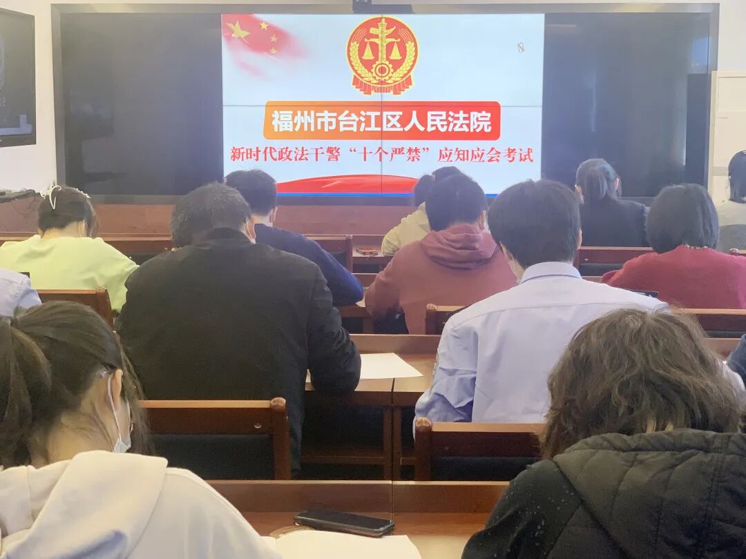 在全院范围内深入开展新时代政法干警“十个严禁”学习宣传教育活动,组织全体干警开展“十个严禁”应知应会测试,做到以测促学、以学促知,确保“两个维护”真正落到实处。